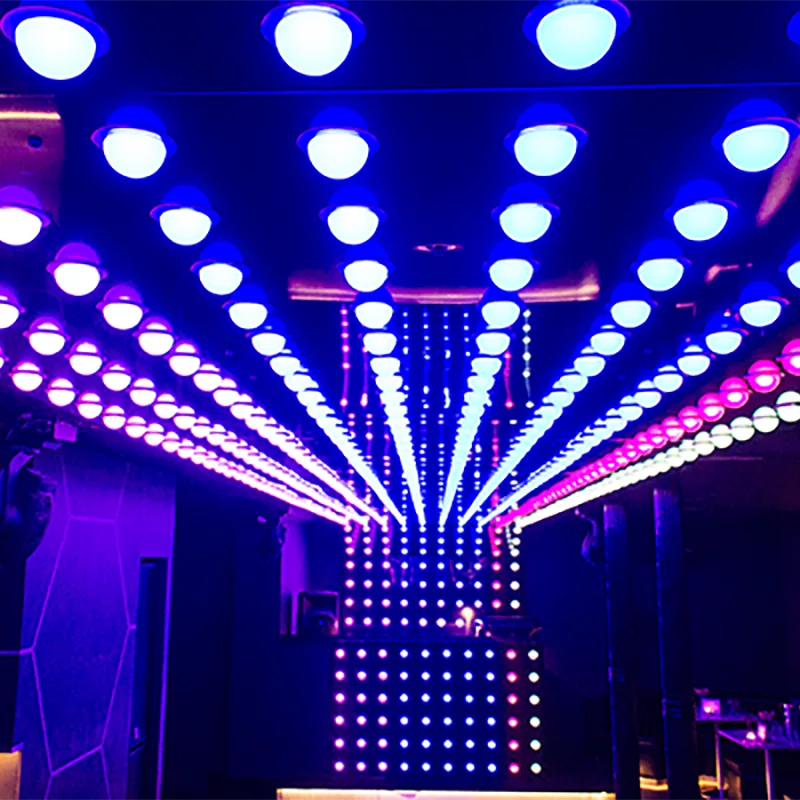 Kawalan Piksel Bebas: Setiap unit Lampu Siling Piksel LED Peringkat berfungsi sebagai piksel bebas. Apabila dipasangkan dengan perisian pencahayaan profesional, ia membolehkan penciptaan kesan visual spatial 3D yang sangat kompleks.